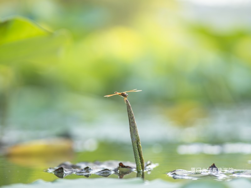 小荷尖尖,蜻蜓轻落,宛如灵动的书签。