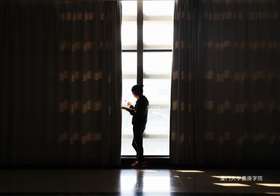 取这个名字是因为这张照片拍的既是人物的背,又是在人物背书时所拍摄的,同时它还是一张背光的照片。偶然遇见的图书馆一隅,一位女生在低头投入地背着书,突然被这个场景触动了心神,就记录了下来。