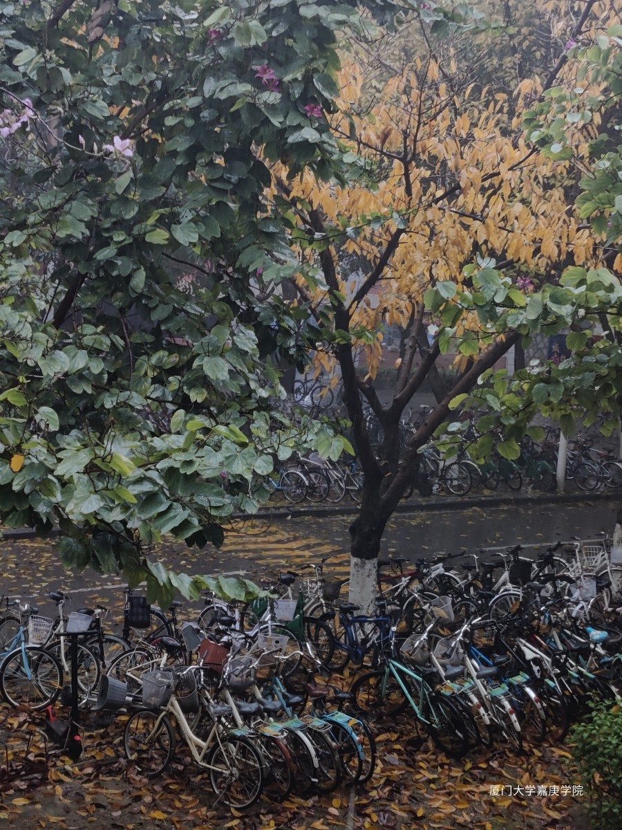 在三月的雨季,我看到了不同寻常的“嘉园”。我们离开家乡,奔赴“嘉”园求学,从此故乡没了春和秋,只剩匆匆来去的冬夏。雨中,树上,新叶挣脱旧叶,半树瑟瑟,半树新生。雨水会冲刷掉遗憾,我看到的是又一个新的开始。