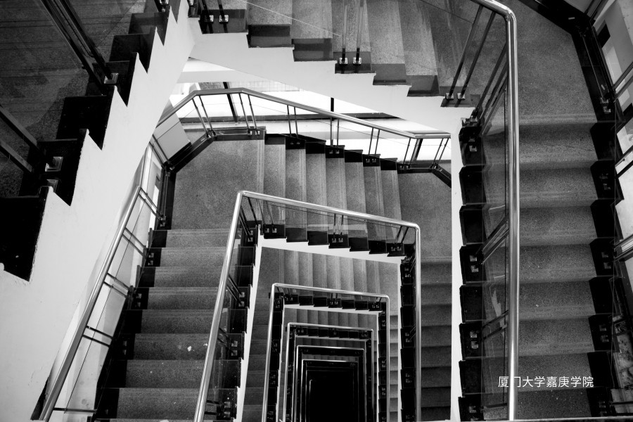 人文楼的楼梯,由上往下看,你会为这看似没有尽头的场景所惊讶。无尽、循环,就像我们的人生旅途,永远走在路上。