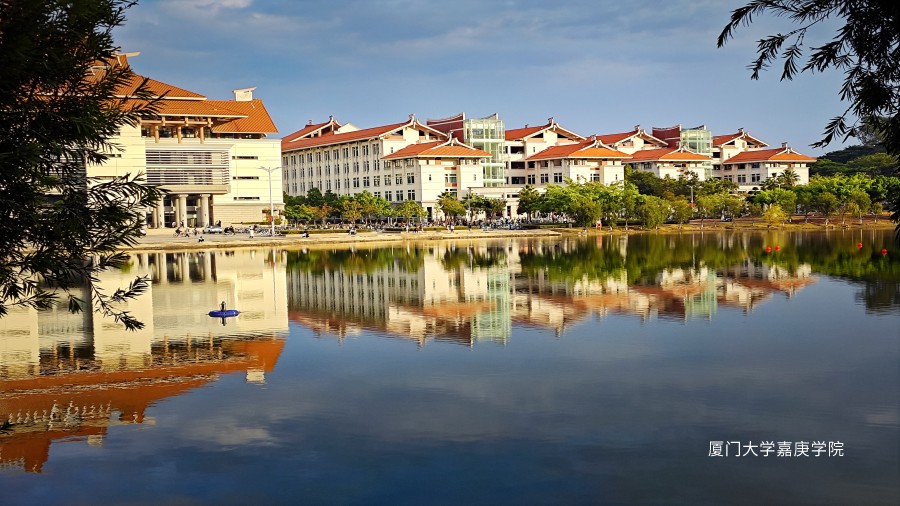 在校拍摄的途中,偶然看见栖霞湖的水面映射着主楼,仿佛在云朵之上