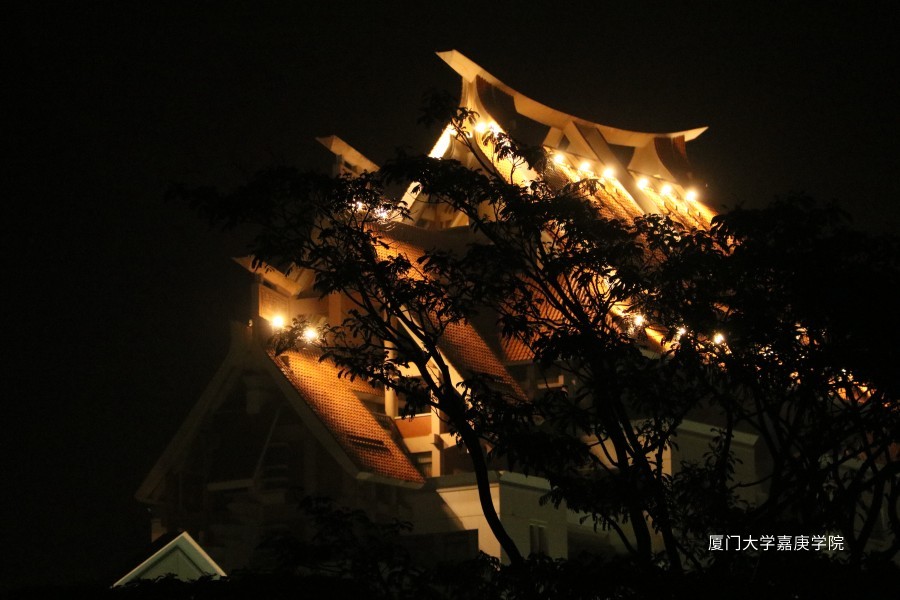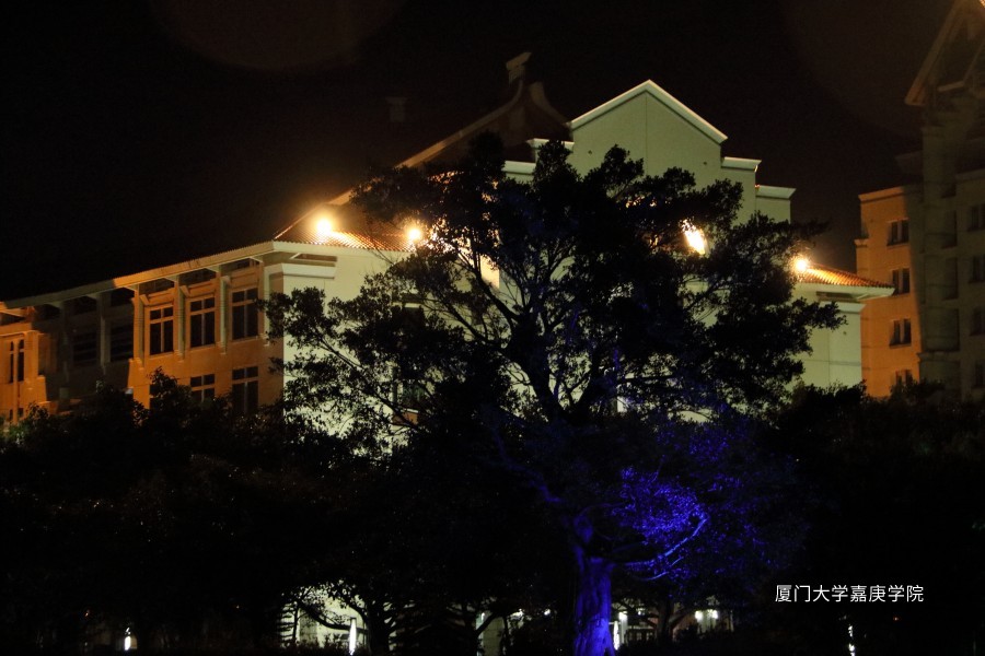 在光的晕染下,在红瓦白墙的主楼前,