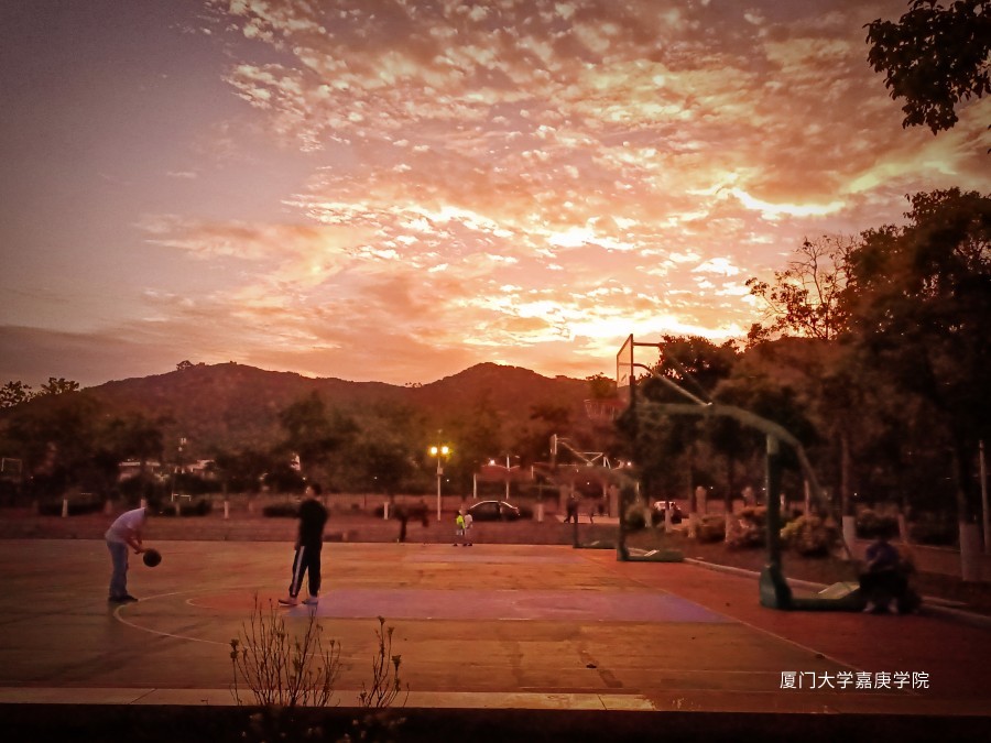 图中是两位同学在打篮球,在这样的天空下,显得更是美丽动人