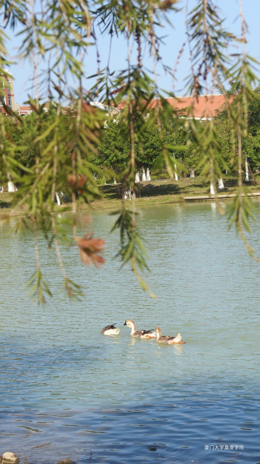 狮头鹅游向对岸