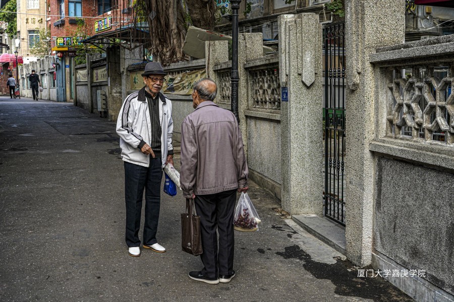 偶然间,两位老朋友在街上相遇了,他们便畅谈一番,十分高兴。