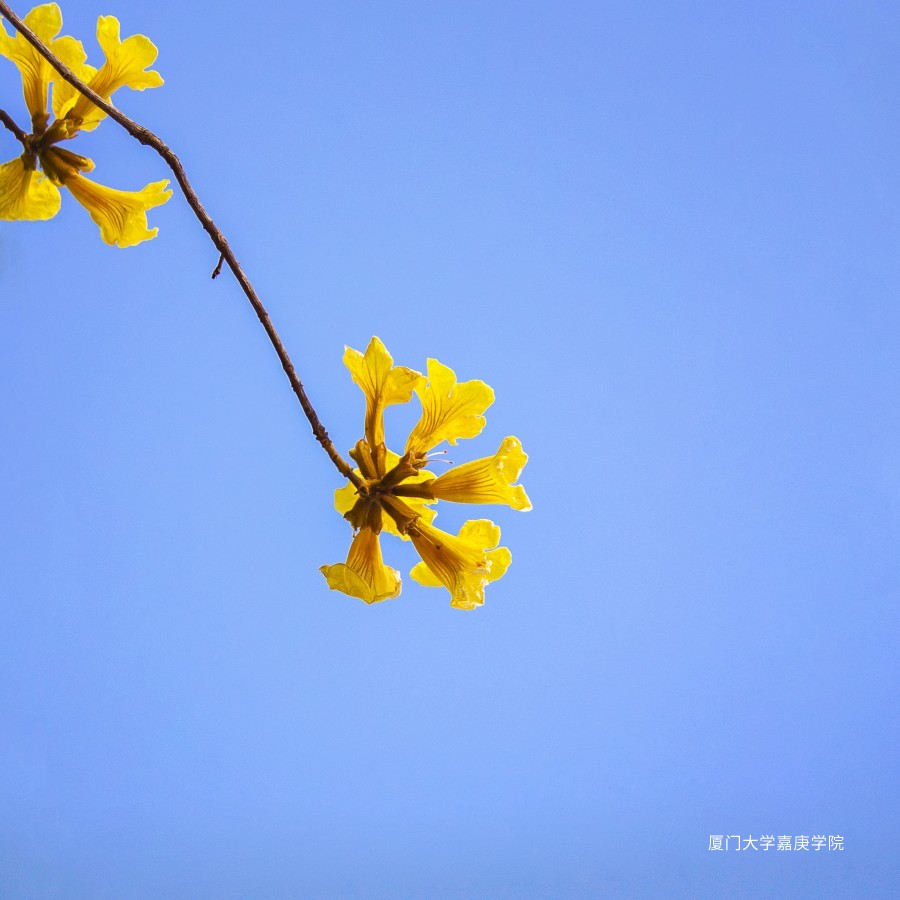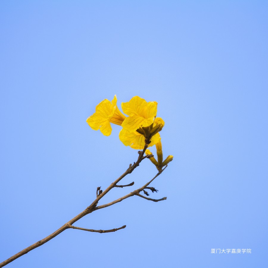 成片的黄花风铃木早已司空见惯,于是我将镜头对准特定的黄花,让天空作为简洁的背景,记录下这一场独属于枝头黄花的美。 摄主楼对岸。