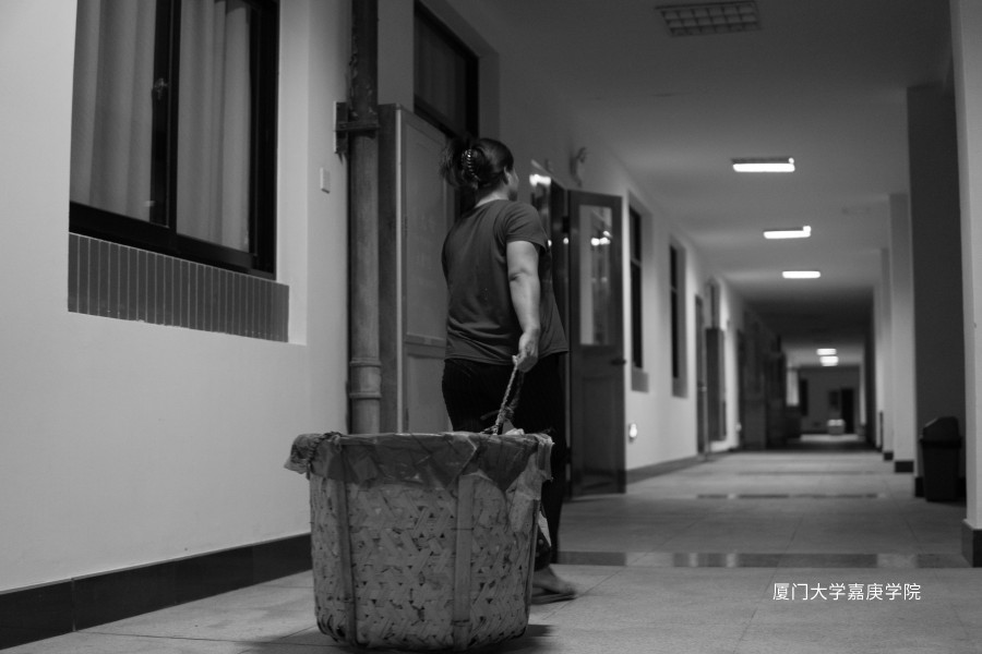 我们每个人在嘉庚四年,但有一群身影却默默肩负着教学楼的卫生状况,也许你不知道他们的名字,忽视他们的存在,但平均在嘉工作十年的他们却一直都在那里。