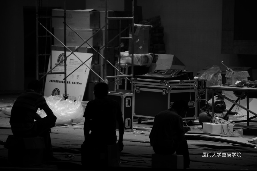 为了毕业晚会工人加夜班进行最后的准备