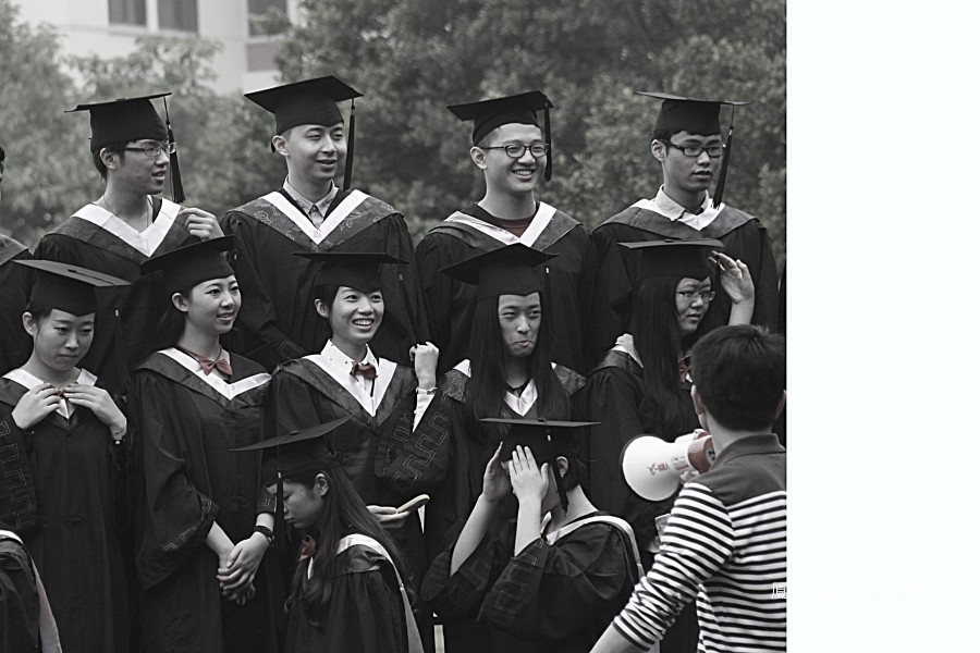 在拍毕业照时抓拍的瞬间,这一刻已成永恒的定格