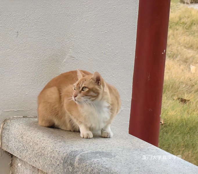 橘白喵酱正在盯着同学们的下课来回穿梭