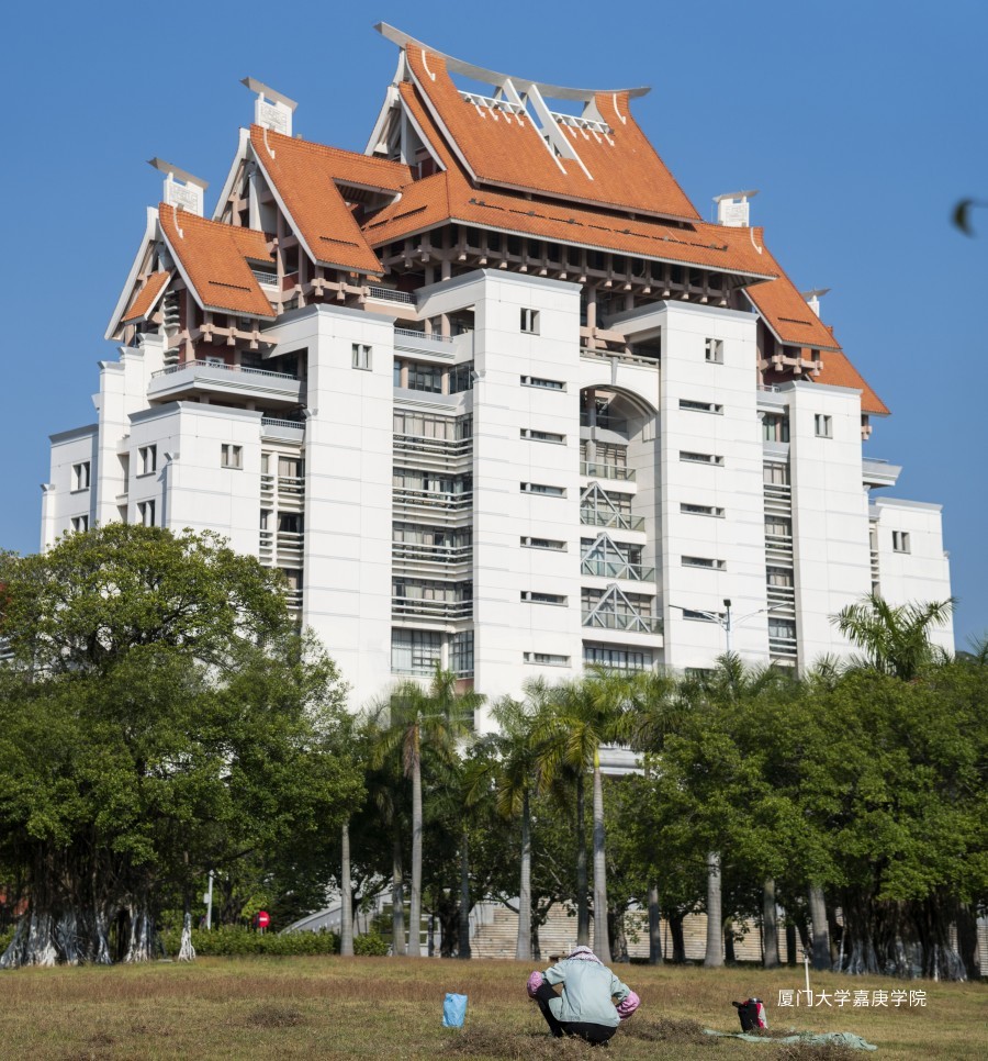 主三楼的高大雄伟与劳动者身形的小巧形成对比。建筑之美是校园的门面,但是环境之美需要她们来守护。